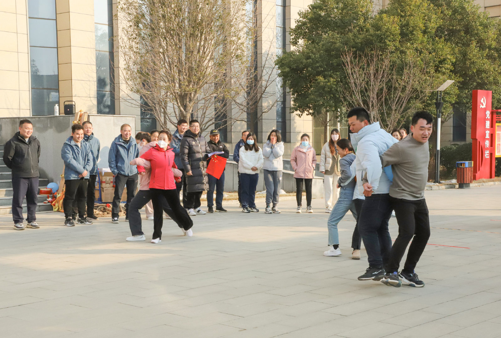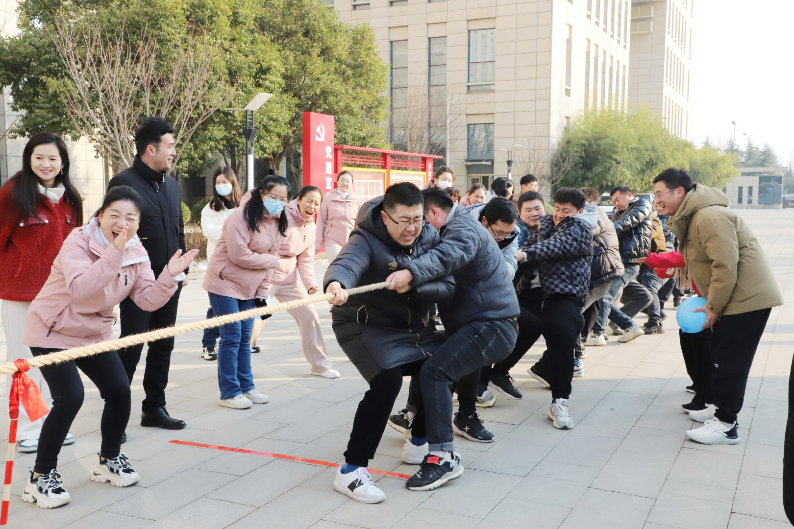 數(shù)九寒冬興賽事,熱情似火融冰雪。12月26日上午,公司在辦公大廈前廣場(chǎng)舉辦“喜迎元旦”趣味運(yùn)動(dòng)會(huì),公司機(jī)關(guān)和項(xiàng)目80余名員工參與了此次活動(dòng)。公司常務(wù)副總經(jīng)理成益洋、紀(jì)委書(shū)記段曉平、監(jiān)事會(huì)主席孫海晶、總經(jīng)濟(jì)師暢瑞鋒、副總工華忠等領(lǐng)導(dǎo)親臨賽場(chǎng),為運(yùn)動(dòng)員加油助威。