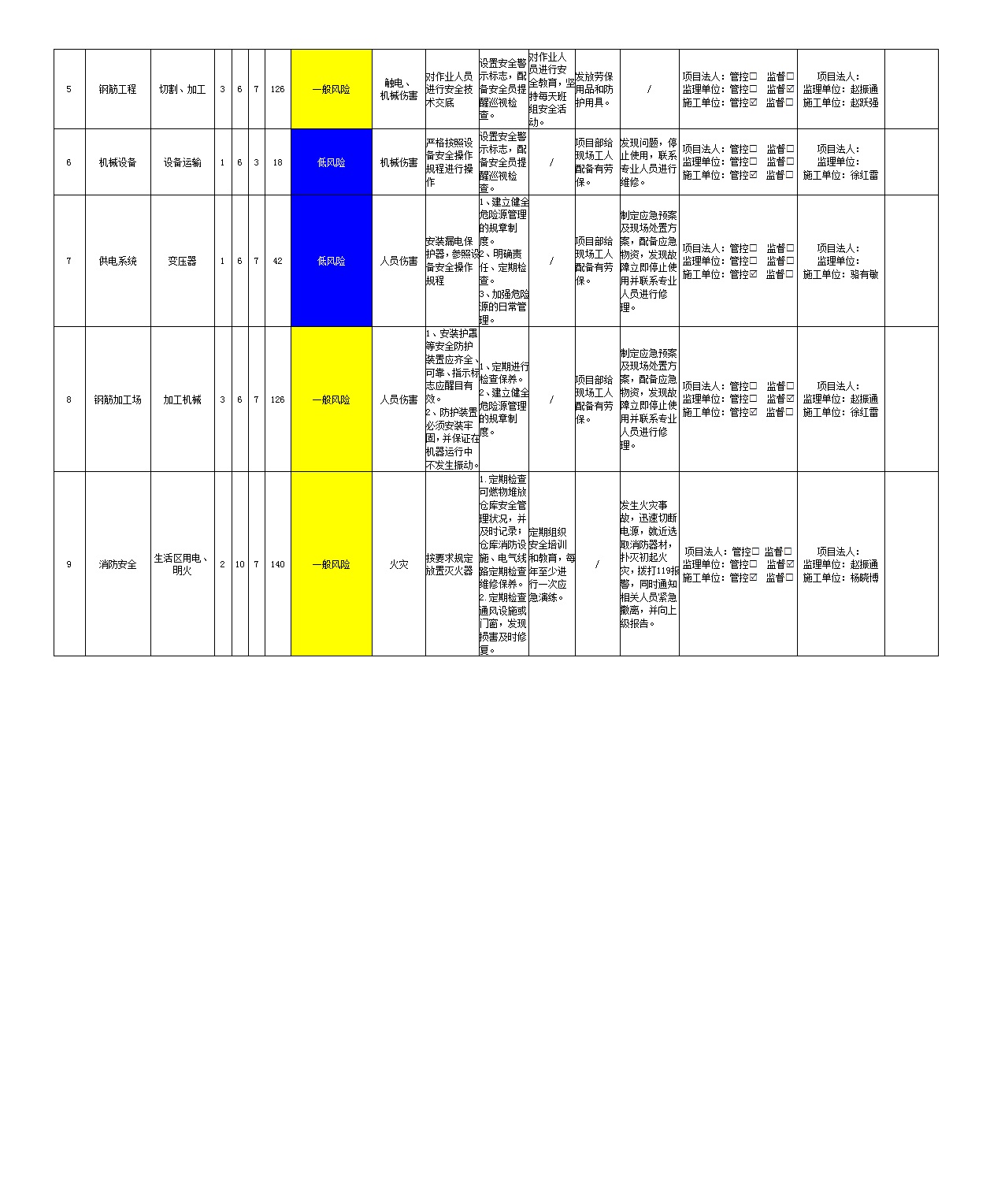 2024年一季度在建項(xiàng)目安全風(fēng)險分級管控清單(小浪底南岸灌區(qū)工程施工7標(biāo))
